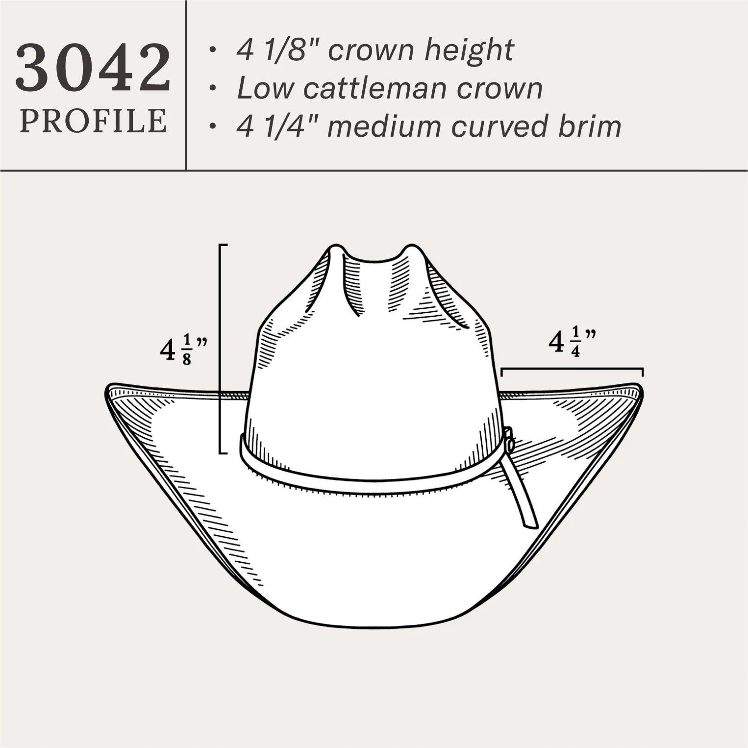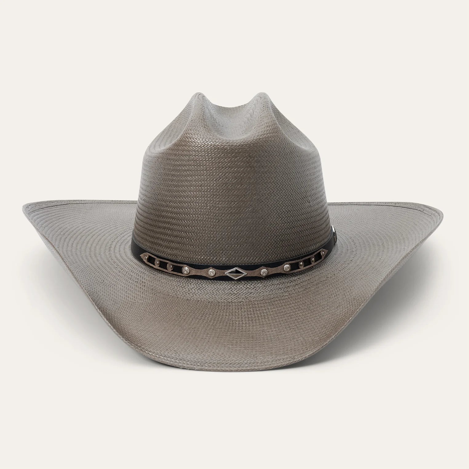 Handwoven one strand at a time in the U.S.A. from 10X quality shantung straw, the Kenton combines our legendary craftsmanship with a timeless western profile and a rich grey tone. It has a 4 ⅛” cattleman crown, 4 ¼” medium curved brim and a studded leather hatband with silver-tone concho. A genuine leather sweatband provides a time-tested, comfortable fit.