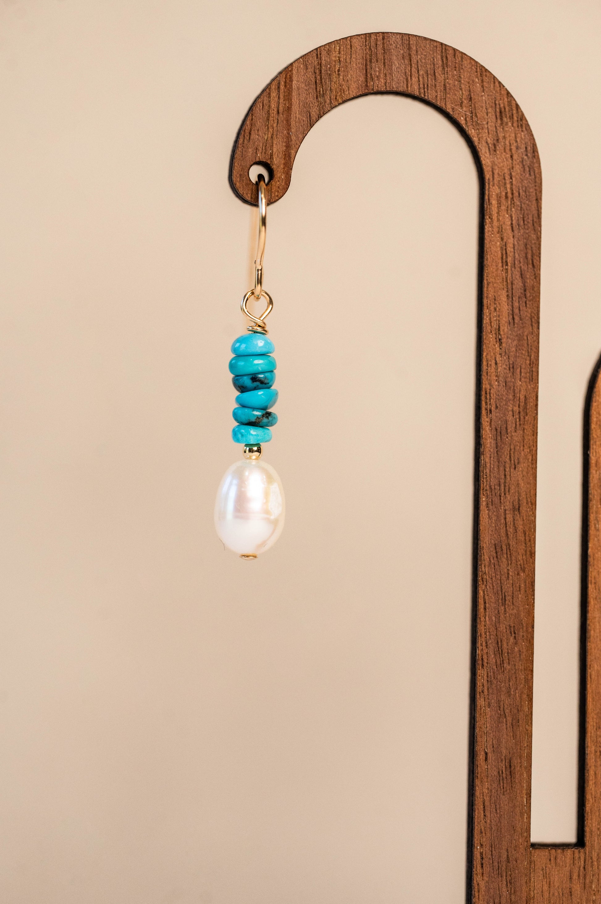 Treat yourself to these beautiful dangle earrings that celebrate natural gemstone elegance. Crafted with 14k gold-filled findings, they feature authentic Kingman turquoise stones paired with delicate freshwater pearls—a combination that honors traditional southwestern artistry. The warm gold tones complement the cool turquoise beautifully, while the pearls add a touch of refined sophistication. Whether you're drawn to turquoise for its calming energy or simply love its distinctive character, these earrings offer genuine quality and timeless style. A wonderful choice for supporting your personal aesthetic and enjoying jewelry that feels as good as it looks.