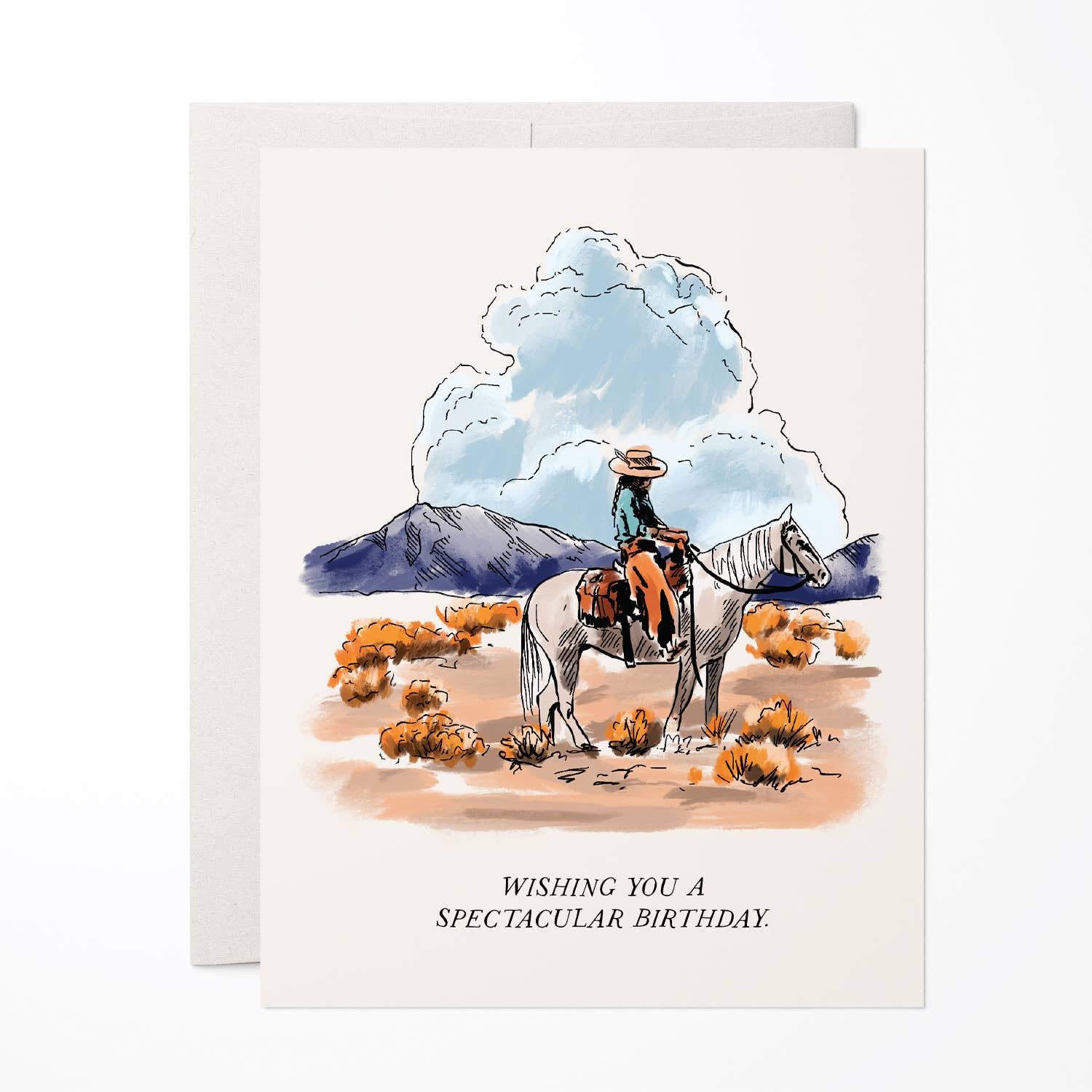This beautiful birthday card has a fun illustration of a cowboy on the open plains. This card has a western vibe that makes it perfect for any loved one in your life.