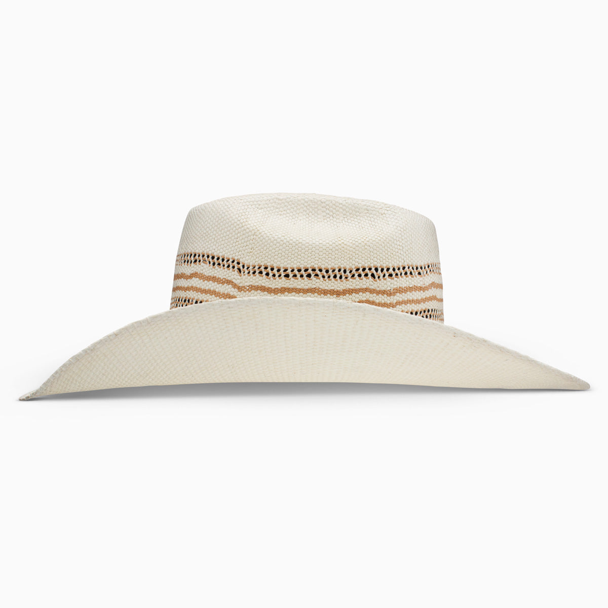 Reminiscent of all the places where cowboys are king, the Rigby Cowboy Hat in Natural is the vented straw hat you’ve been looking for. Part of our Cody Johnson Collection, the Rigby features a 4 1/2" medium brick crown, a 4 1/4" brim, and a Dri-Lex sweatband. A woven line design dresses up the crown and the tan hatband bears a CoJo logo pendant.