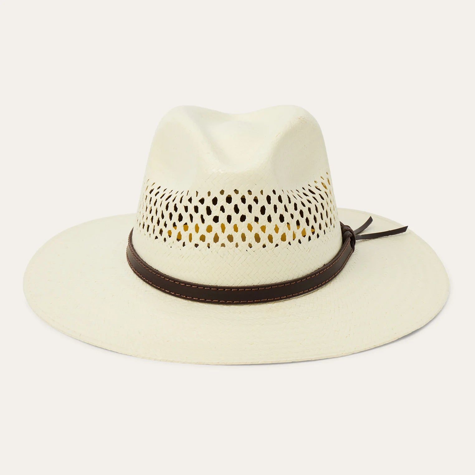 Handwoven one strand at a time from high-quality shantung straw, the Digger brings timeless style and maximum breathability to any warm-weather adventure. It has a classic profile, with a 4” teardrop crown and 3 ¼’ underwelt brim, and is fitted with a rugged leather hatband. The crown’s intricate all-around venting allows for circulation, a UV underbrim keeps the sun at bay with UPF 50+ protection and a cotton sweatband provides a cool, comfortable, all-day fit.