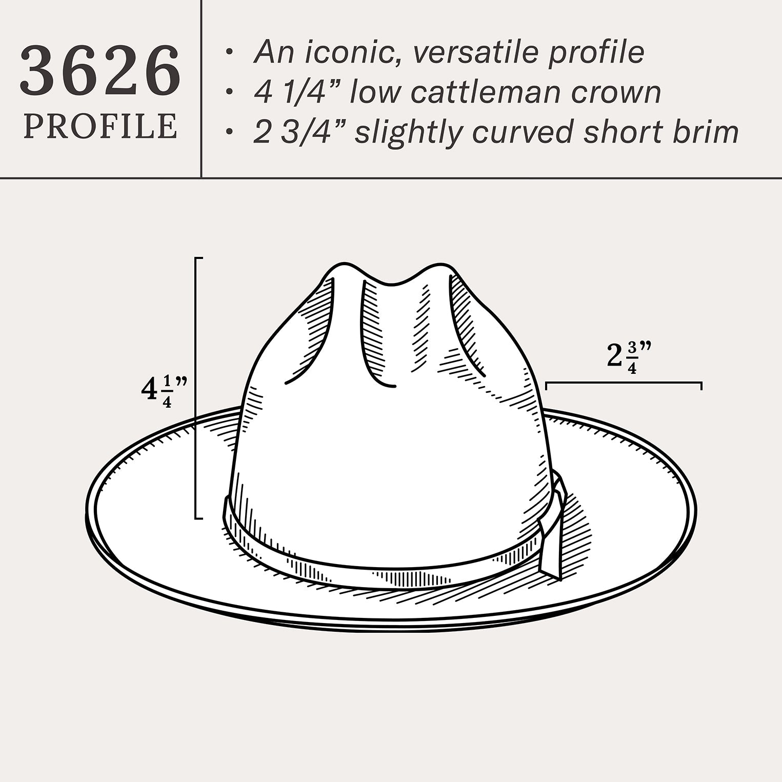 The Open Road Royal Deluxe features a roan leather sweatband and a 4 ¼” crown outfitted with a grosgrain hat band and branding-iron hat pin bearing the initials “JBS”, a nod to our founder, John B. Stetson, whose pioneering legacy lives on in every hat we sell.