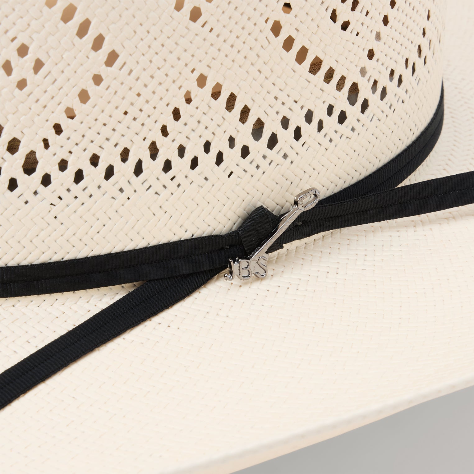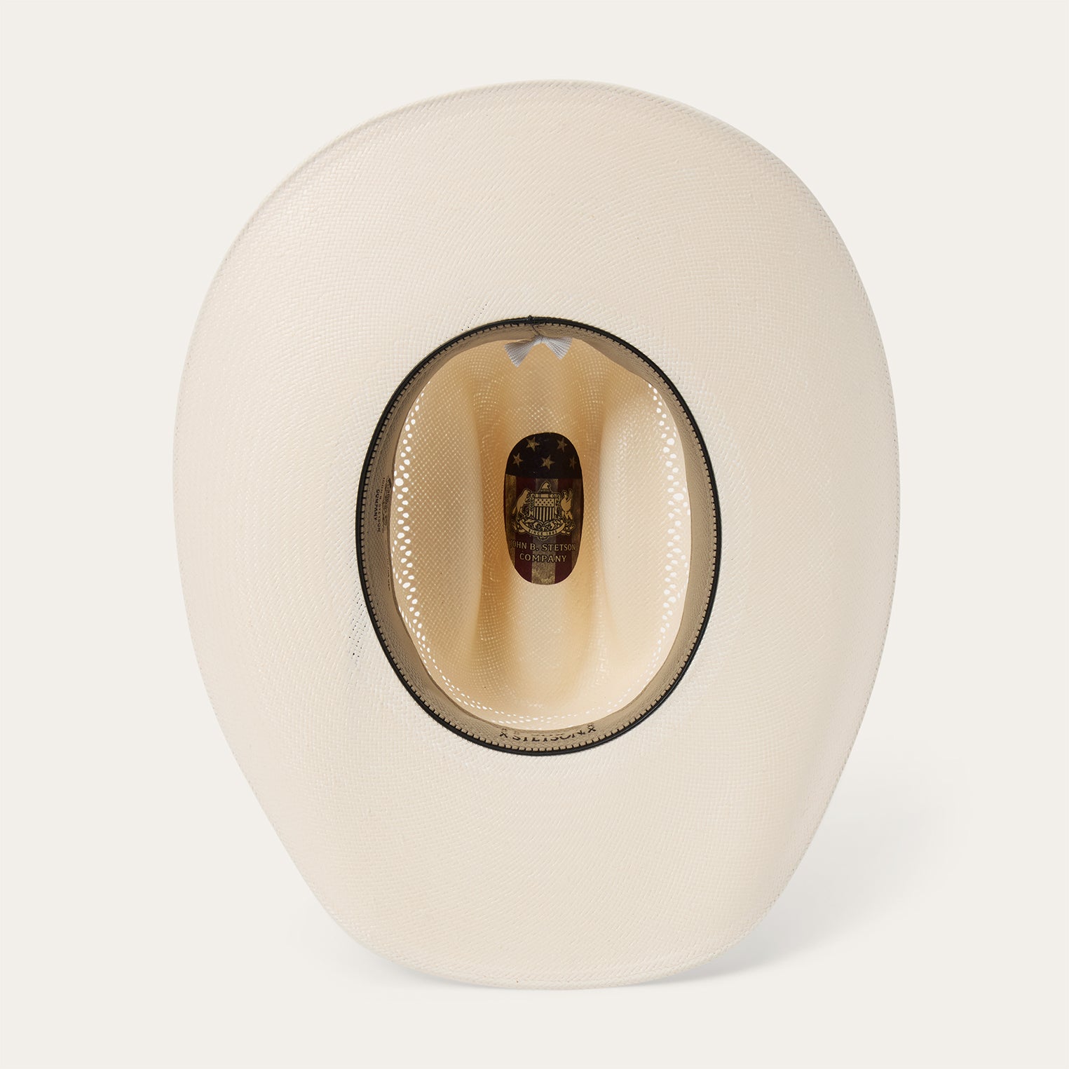 Handwoven one strand at a time in the U.S.A. from 20X quality shantung straw, the Saddleman combines our legendary craftsmanship with our new Wear Ready profile—which features a 4 ⅛” low cattleman crown and 4 ¼” shovel front brim. It has a black 2-ply grosgrain ribbon hatband with JBS branding iron pin—a nod to our founder John B. Stetson, whose trailblazing legacy lives on in everything we make—and a DRI-LEX® absorbent sweatband provides that a cool, comfortable fit.